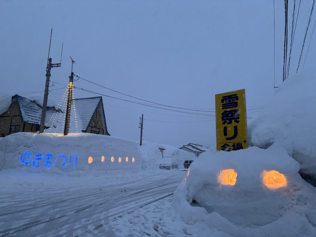 豪雪地帯の飯豊町。特に雪の多い中津川地区では例年3~4m程の雪が降り積もります。雪は厄介者という考えから、雪を楽しもうと「克雪の精神」で1981年に始まった中津川雪祭り。ツアーでは雪祭りのお手伝いも予定しています。毎年地区の皆さんで道路脇の雪壁を掘ってろうそくを立て、雪の回廊を作り、その幻想的な景色を楽しみます。中津川地区の各エリアでさまざまな催しが予定されていますので、夕食後は参加者の皆さんで雪祭りを見学しましょう♪
