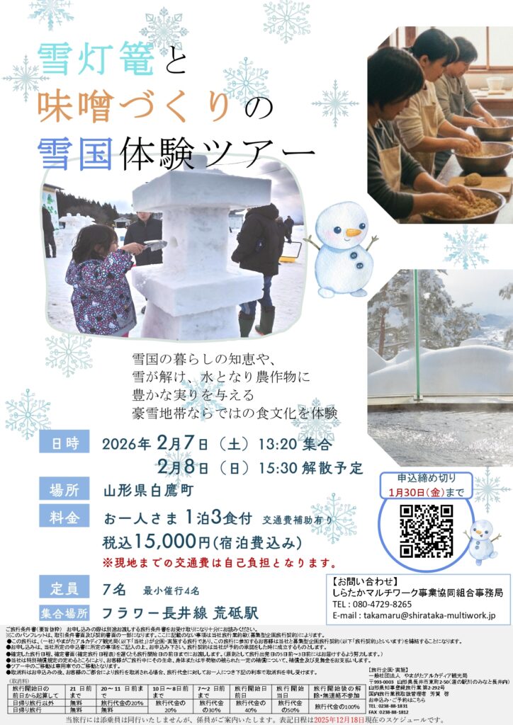 【白鷹町】雪灯籠と味噌づくりの雪国体験ツアー