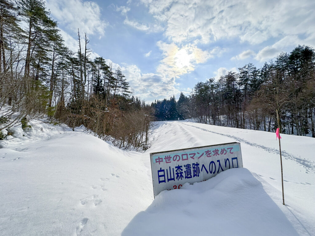 白山森遺跡はかつて山城があったとされる遺跡群で、現在は土塁と空堀、頂上付近の白山森神社のみが残されています。