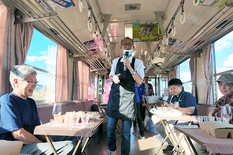 結城酒店 結城 秀人さん / 写真は前回大好評だった「プレミアムワイン列車」の模様