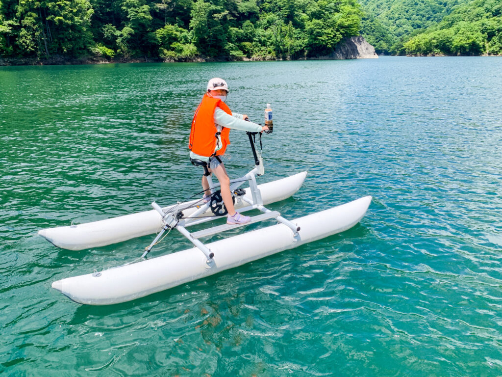 ☆水上自転車は非常に安定感が高い仕様のため、水に濡れずに楽しめる水上アクティビティです。