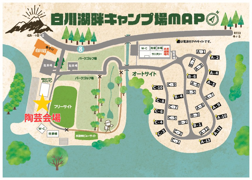 当日は、下記地図内の「★ 陶芸会場」と記載している場所へ直接お越しください。