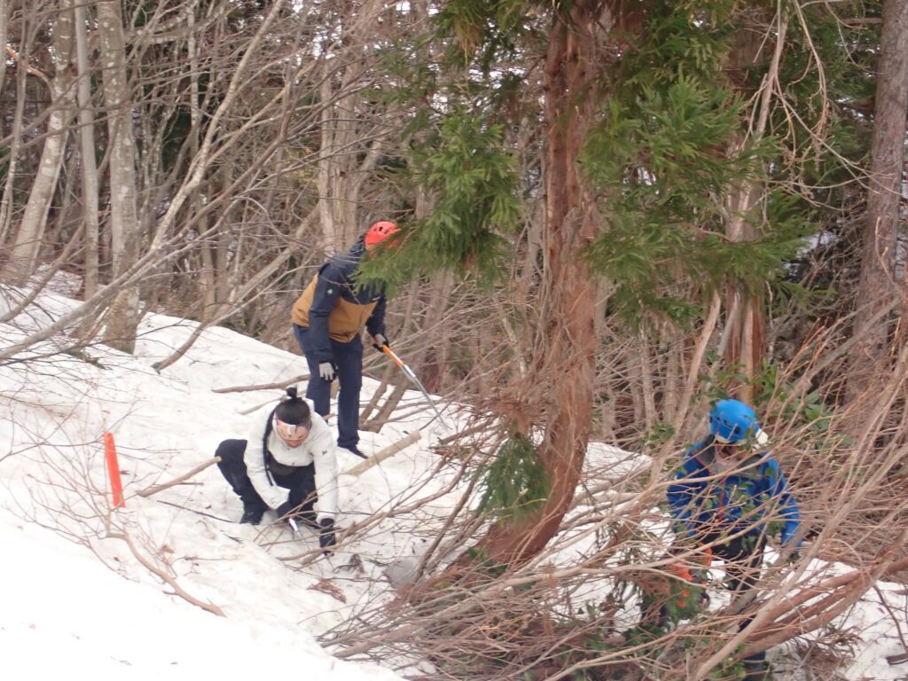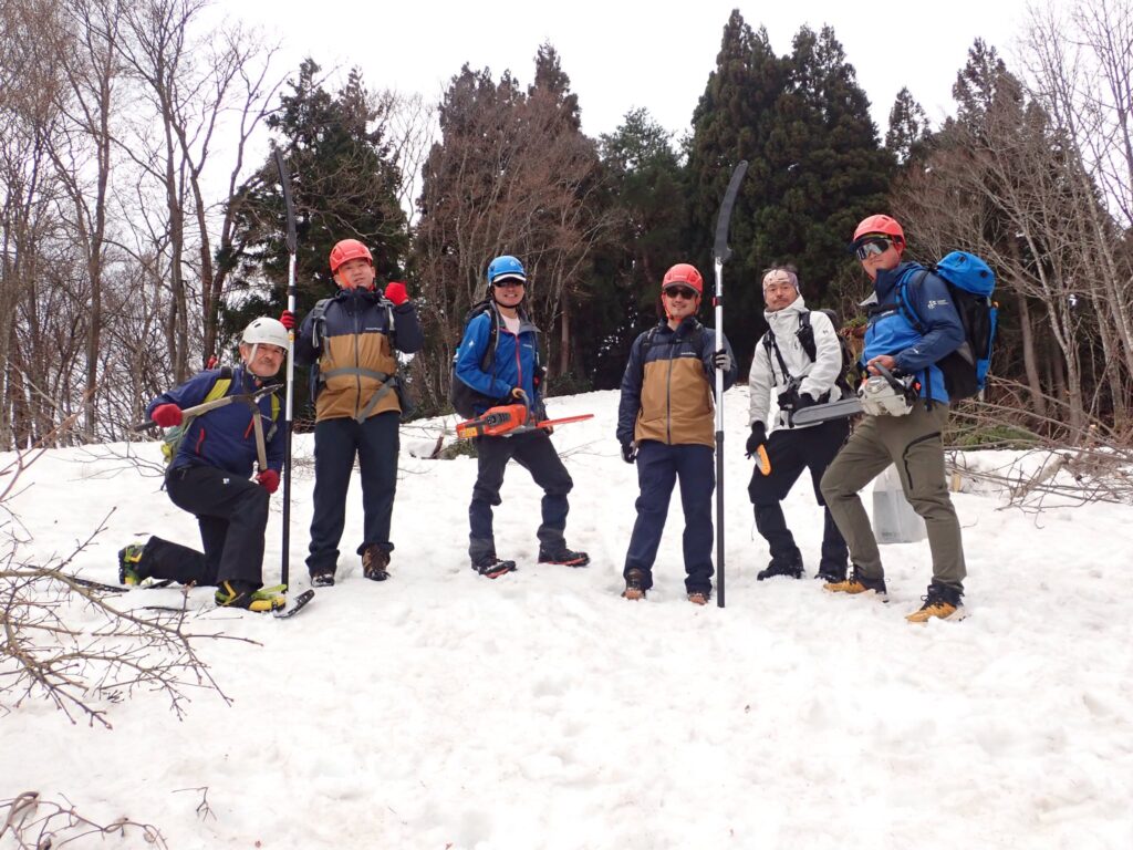 八木ガイド・大村ガイド、長井市地域おこし協力隊渋谷隊員、やまがたアルカディア観光局職員で、展望所前の木々の伐採、展望所の整備を実施しました。まだ積雪が約40~50cmほど残る中の作業となりましたが、だいぶ見晴らしが確保できました!